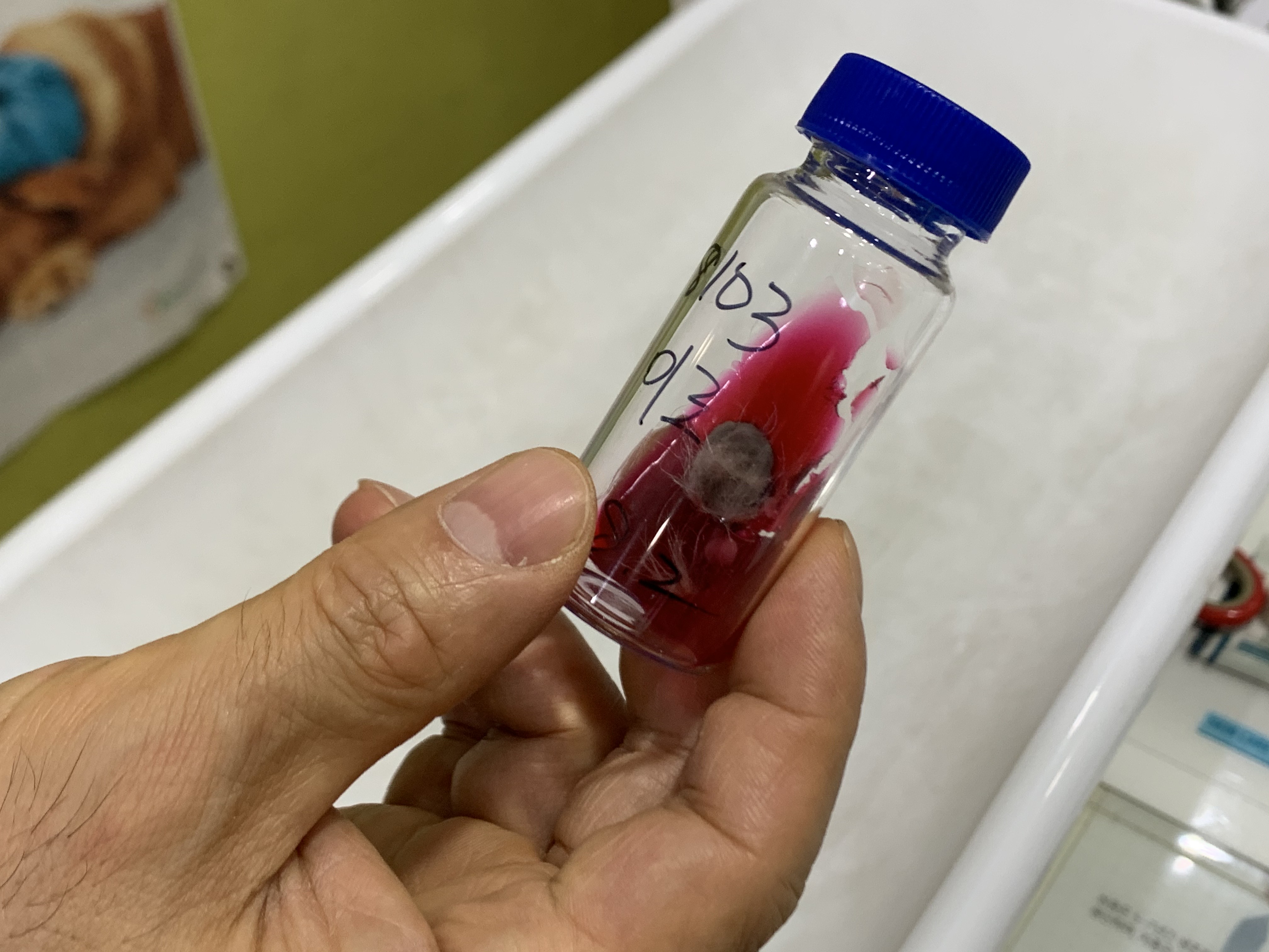 저기 있는 바세린 느낌의 꾸덕 형태에 링웜현상이 온 주변부 털을 뽑아 꽂았더니