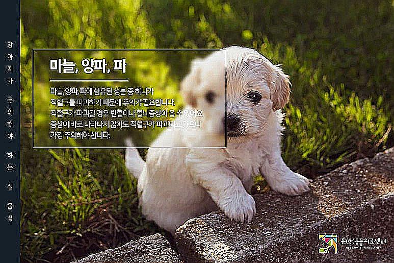 꼭 명절 음식이 아니더라도 보통 음식에마늘과 양파, 파가 많이 들어가는데요..마늘과 양파, 파에 들어가는 성분 중 하나는강아지의 적혈구를 파괴하기 때문 에 주의해야 해요.'알릴 프로필 다이설파이드'라는 성분은강아지 적혈구를 파괴하는데 적혈구가 파괴되면빈혈이나 혈뇌증상을 유발할 수 있다!!!!:).음식을 먹고 바로 반응이 오지 않더라도적혈구가 파괴되고 있을 수 있으니조심해야 해요!명절 연휴에는 병원을 오기 어려울 수 있으니문제가 될 수 있는 음식은 주지 않는 것이 괜찮아요.간식이나 사료도 평상시에 주는 것으로 급여해주세요!