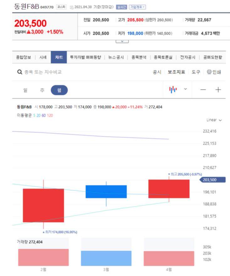 동원F&B에요..동원F&B는 일반식품, 조미유통부문, 사료부문 등의 사업을 나누어 운영하고 있는 기업에요..건식 펫 푸드와 반려동물 보양식 등의 다양한 펫 푸드 사업을 영위하고 있기 때문 에 반려동물 관련주 로 분류되었어요..