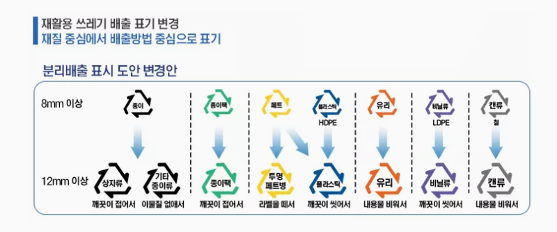 >재할용 쓰레기 표출 표시가 재질 중시에서 배출방법 중심으로 변경